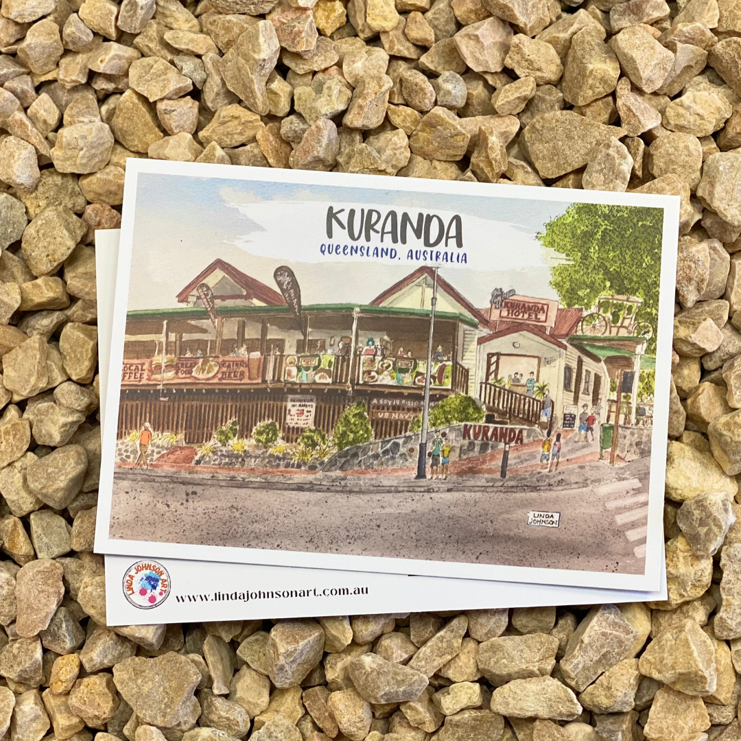 Send some Kuranda love with this playful postcard. Take the Kuranda Scenic Railway up and back on the Sky Rail. Explore the quint wee town, then stop for a cold beer at the Kuranda Hotel before making it back down the hill.