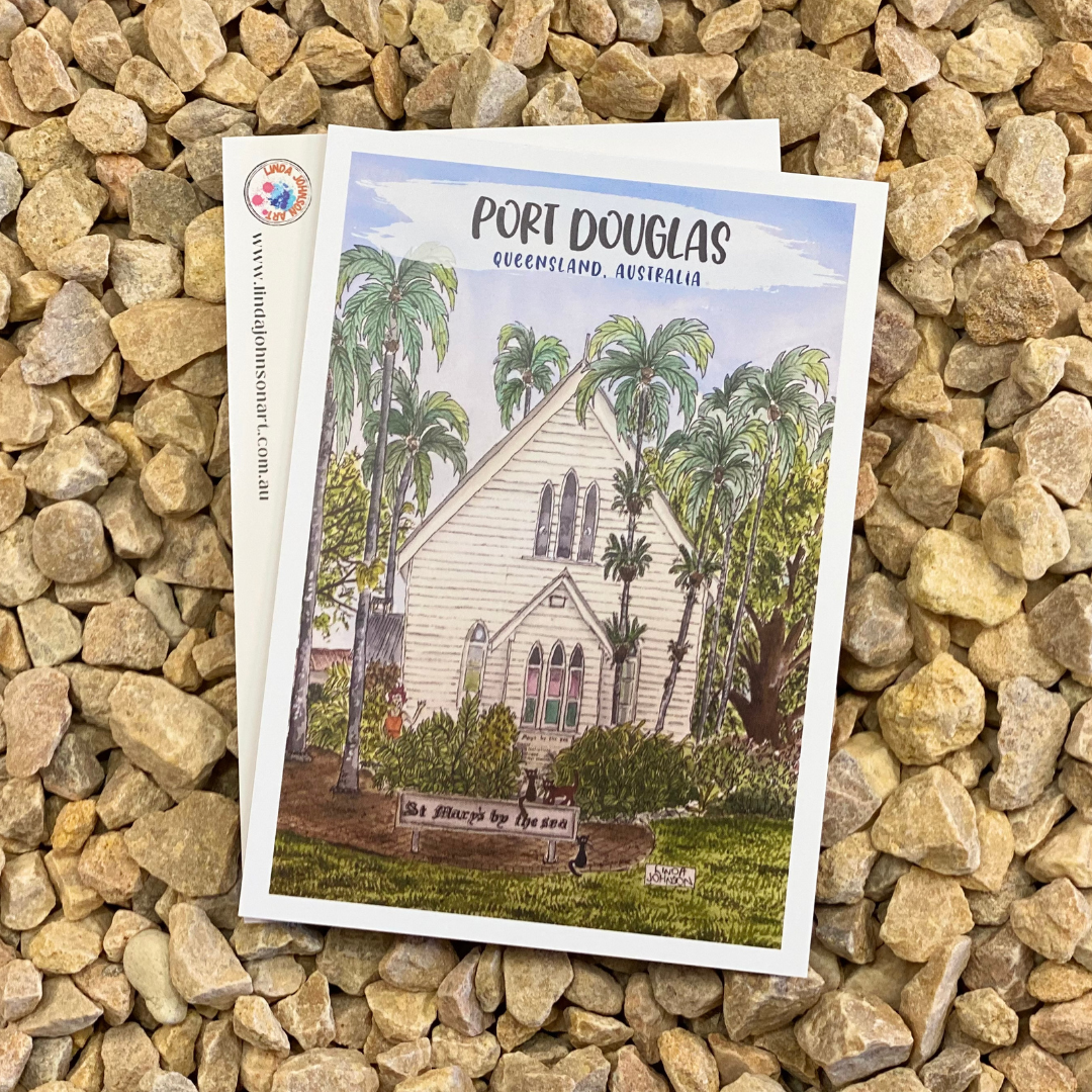 Explore the stunning architecture and rich history of Port Douglas with my St Mary's by the Sea postcard. Featuring a beautiful depiction of the local church, this postcard is perfect for anyone who has experienced the town's charm. Share your memories or inspire someone to visit this must-see destination.
